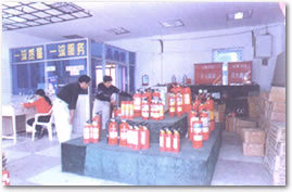 消防器材专卖部成立于1998年12月。主营:消防水枪、接 扣、消防水带、室内外消火栓、水泵结合器、消防箱、1211、302冷火灭火器、干粉、二氧化碳及轻水手提式灭火器,各系列推车式消防器材。年营业额100万元。 Fire Equipment Store The store was set up in December 1998. The main material it sells includes: fire hydraulic giant, fire hose, indoor and outdoor fire hydrant, fire box 1211 and 302 fire extinguisher, etc. The yearly turnover is about 1 million yuan.